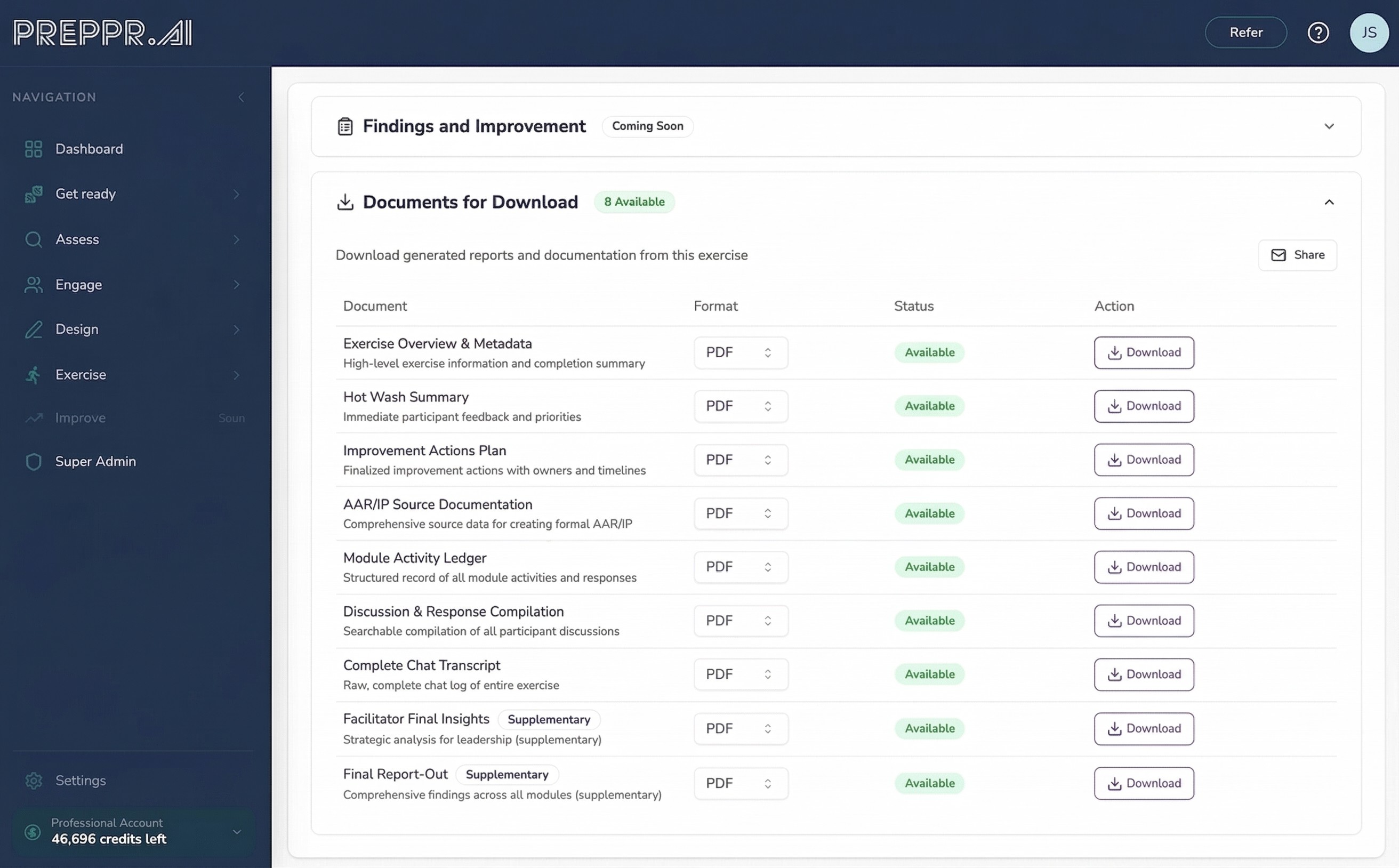 By the time Preppr's exercise delivery workflow reaches the Improvement Planning phase, the system already has: