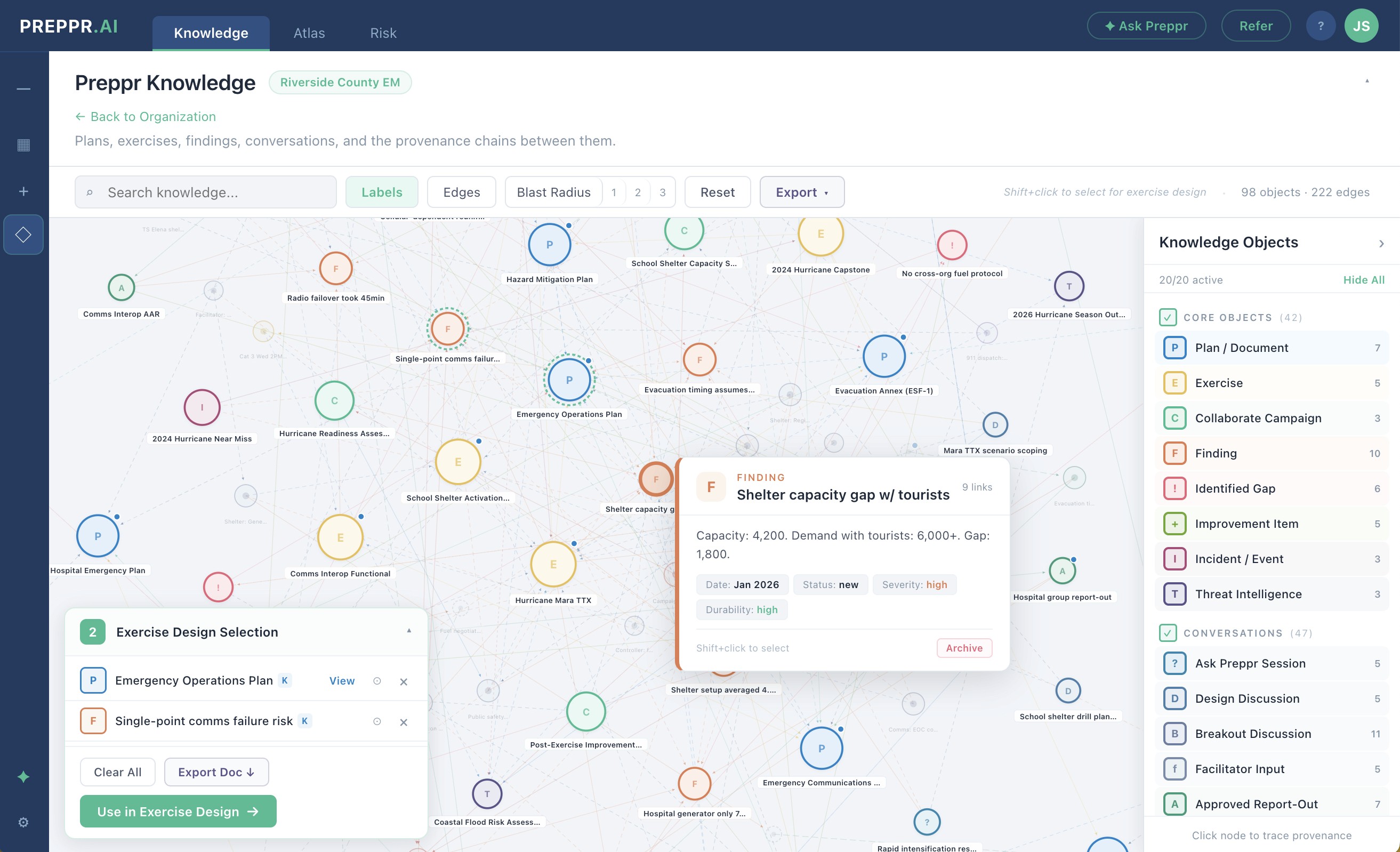 The compounding effect is significant. Each exercise cycle produces an approved improvement plan. The next exercise tests whether those improvements worked. Preppr's knowledge graph captures organizational intelligence from every exercise cycle, so institutional memory doesn't walk out the door when personnel turn over and every subsequent exercise starts from a richer baseline.