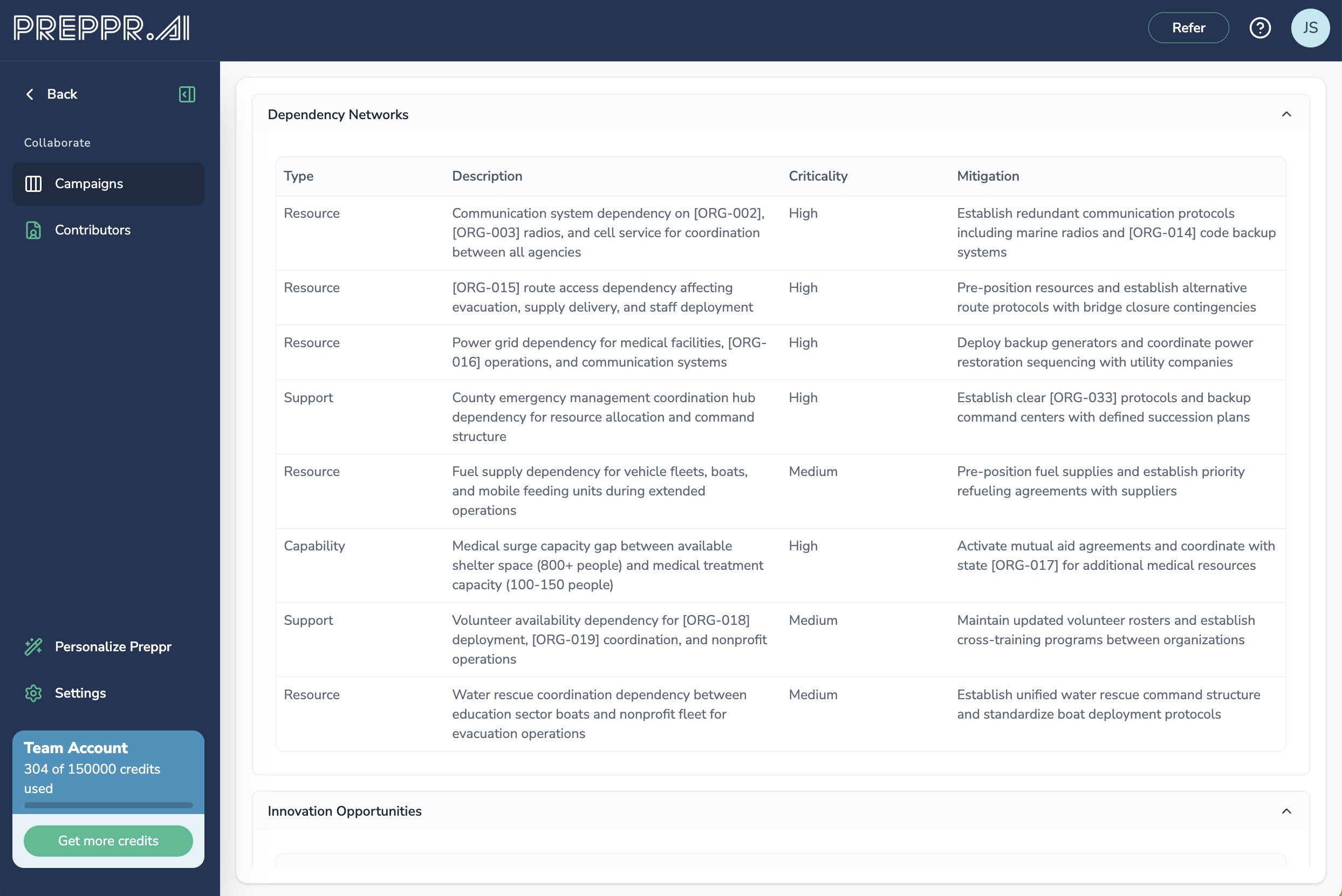 For organizations that want to ground their exercise design in genuine stakeholder intelligence rather than a single planner's assumptions, Preppr Collaborate provides the foundation. Through a structured four-phase workflow — Campaign Setup, Contributions, Synthesis, and Integration — Collaborate aggregates input from anywhere between a handful of stakeholders and a community-wide engagement of thousands. Organizations contribute their capabilities, vulnerabilities, and operational context through guided conversations. The synthesis engine identifies consensus patterns, critical dependencies, and gaps across all submissions, then generates draft inject recommendations that feed directly into exercise design. The result is an exercise grounded in what your stakeholders actually know about their own organizations — not a scenario built in isolation.