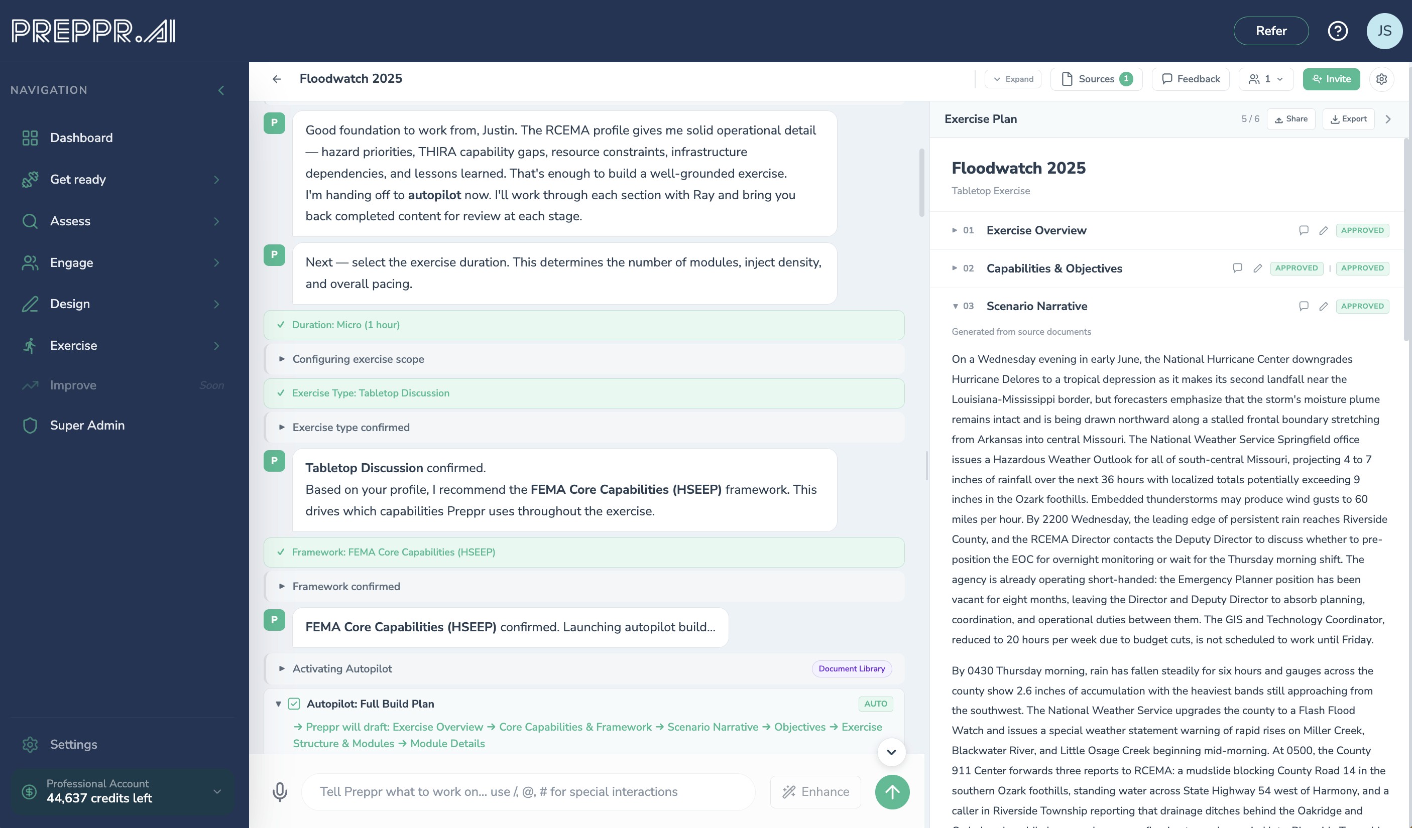 Preppr does something different — it helps you practice and capture complexity through your work. Assess, engage, design, exercise, improve. It's a preparedness workspace, not a chatbot.